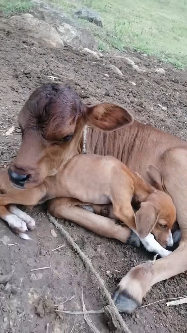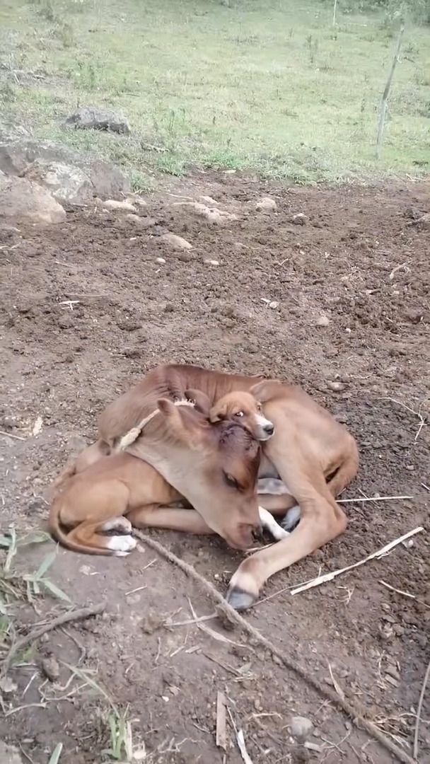 仔牛と子犬の友情を捉えた動画は、南米ベネズエラのとある牧場で撮影されました。