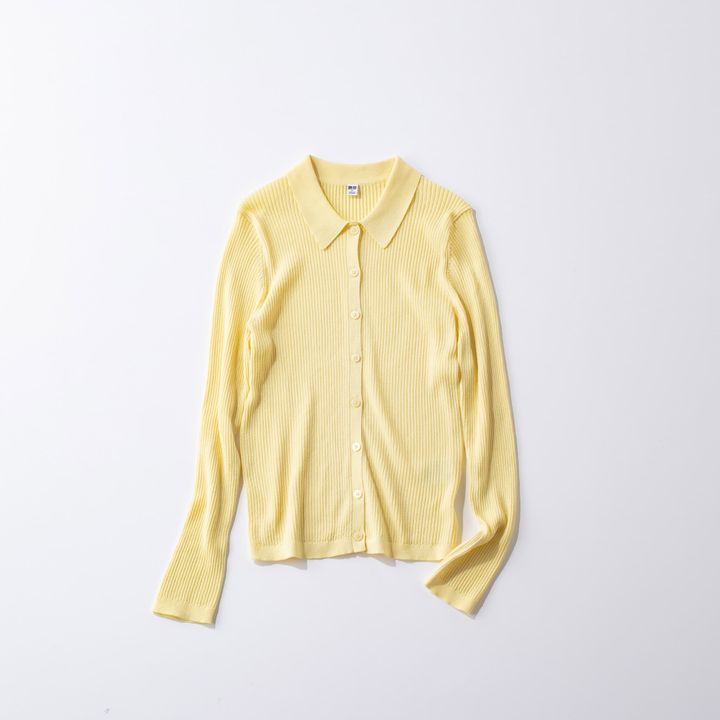 【ユニクロ】イエロー リブポロカーディガン ¥2,990