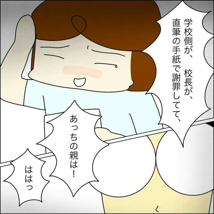 夫の対応により、ツマ子さんは加害者の保護者に対し、これ以上何も言えなくなってしまいました…。学校側の対応は正常だっただけに、加害児童の保護者の誠意のなさと常識のなさが目立ちますね。