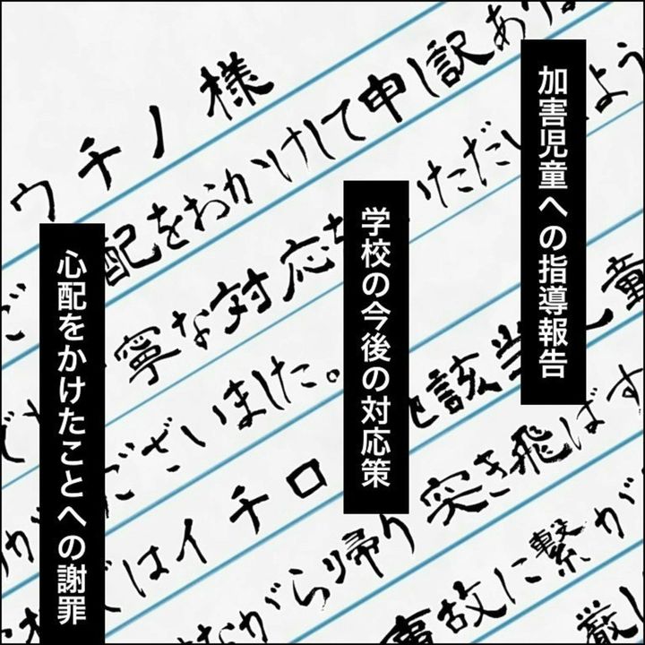 学校から、事故原因について説明を聞きに行く前、ツマ子さんは夫に「お互い悪ふざけをしていたのであれば、謝罪はいらない」と伝えていました。しかし、夫から聞いた説明では、イチローくんに非はまったくありませんでした。一歩間違えれば、命に関わる重大な事故だったにもかかわらず、加害児童の保護者は電話で謝罪をすませていました。