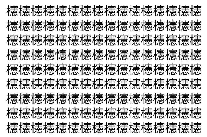 2. 【脳トレ】「櫶」の中に紛れて1つ違う文字がある!?あなたは何秒で探し出せるかな??【違う文字を探せ!】