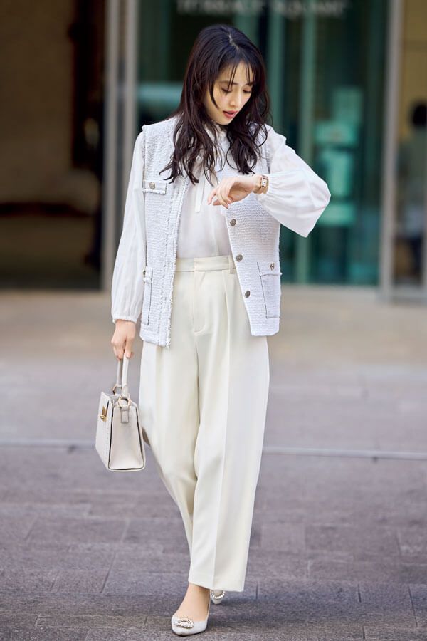 3. 5月最初の日は清潔感ある全身ホワイトをパンツルックでキレよく!<5/1のコーデ>