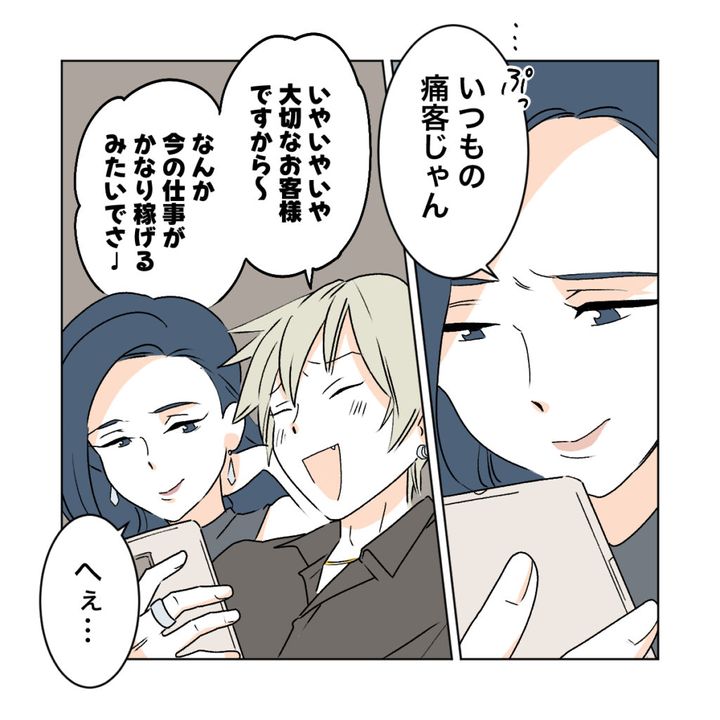 その頃カズハさんは、ルキくんというホストに夢中!「私がナンバー1にしてあげるからね。早くルキの本カノになりたいな~」とウキウキのカズハさんに、「俺も仕事頑張って姫と付き合いたいな」と思わせぶりな言葉を囁くのでした。
