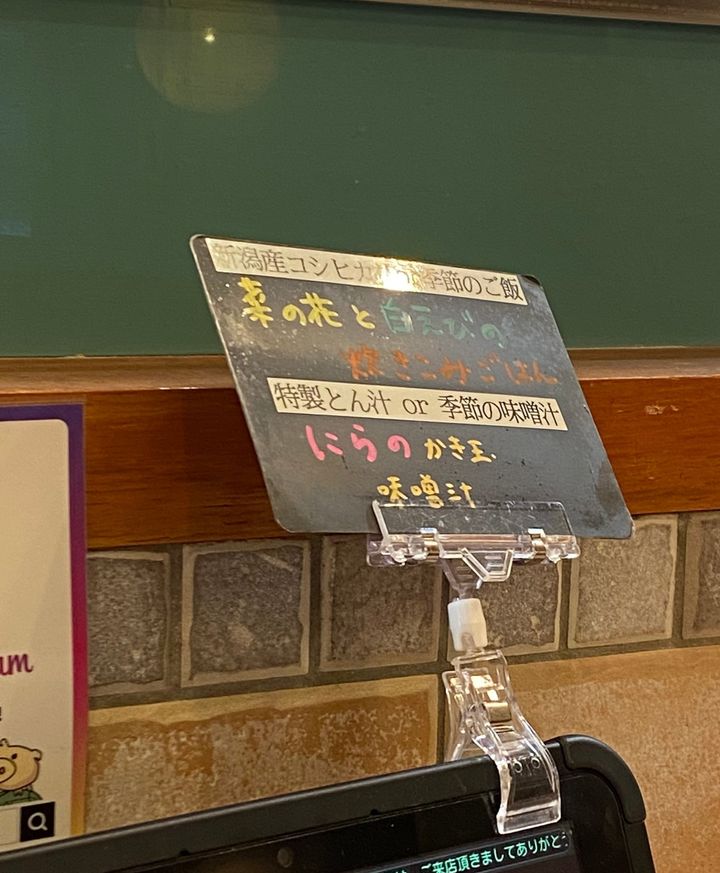 そして、すごいなぁと思うポイントが御膳の人は普通のご飯or季節のご飯、特製豚汁or季節の味噌汁か選ぶことができるんです✨️