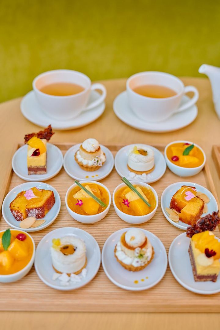 “芳醇な香りを放つ艶やかなマンゴー”を贅沢に用いたSophie’s Mango Afternoon Teaでは「マンゴープリン」、「マンゴーパイナップルパウンドケーキ」、「マンゴーパッションチョコレートケーキ」など6種類のスイーツがラインアップ。加えて、ミントクリームを隠し味にした「天然本マグロとフレッシュマンゴーのタルタル」、「焼きとうもろこしとドライマンゴーのケークサレ」、「東京産の真黒酢と瀬戸内オリーブオイルをアクセントにしたフォアグラのフラン」など、マンゴーと相性のよいセイボリーが4種類揃います。