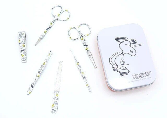 中には毛抜き・耳かき・爪やすり・眉用はさみ・鼻毛はさみ・爪切りが揃っていて、全てにスヌーピーとウッドストックのイラスト入り♪ おしゃれで実用的なセットは、毎日の身だしなみが楽しくなること間違いなしです。