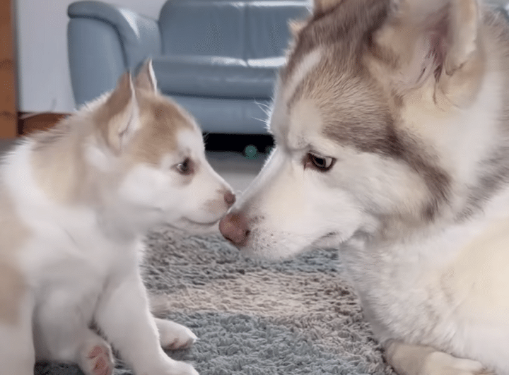 3. そっくりなハスキー親子、じゃれあう姿にほっこり♡