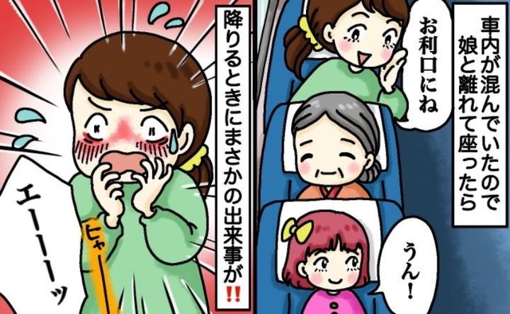子どもが4歳くらいのとき。路線バスで帰宅していたときのことです。ひとり掛けの席に娘が座り、私は近くで立っていました。娘の後ろには高齢の女性が座っており、疲れていた私は女性の後ろの席に座ることに。その結果、思いもよらない事態になってしまい……。