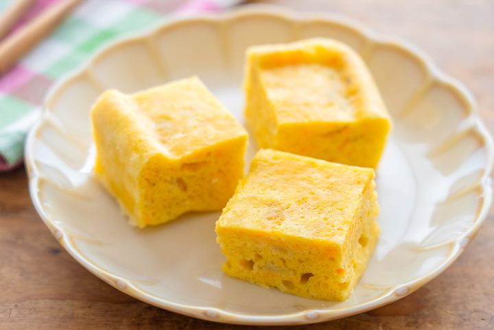 にんじんとバナナの自然な甘みで、砂糖不使用でも満足感◎! プラスチック製の容器に入れてレンチン5分で作れる簡単おやつです。お子さんのおやつや朝食に、ぜひ作ってみてくださいね。甘みがバナナとにんじんのみなので、甘さを足したいときは少しお砂糖を入れるか、メープルシロップをかけるのもおすすめです!