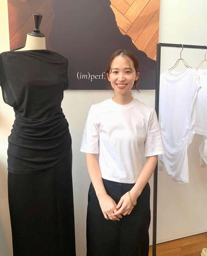 “不完全な美しさ”をコンセプトにした「(im)perf.(インパーフ)」は、削ぎ落すことで生まれる余白の心地よさや素材の魅力、着る人の美しさを引き出すことを大切にしたいという佐藤さんの思いが込められたブランド。シンプルだけれど、着るだけで存在感を放つ、まさに佐藤さんらしいムードがたっぷりのファーストコレクションは全3型。