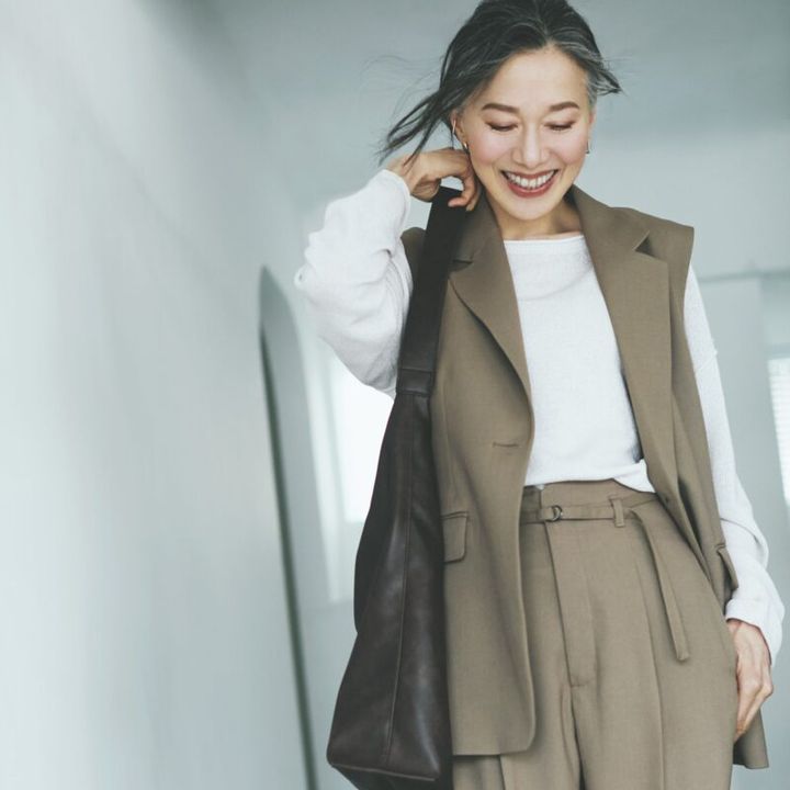 大人世代に人気のジレはやさしげ顔のブラウン系をチョイス