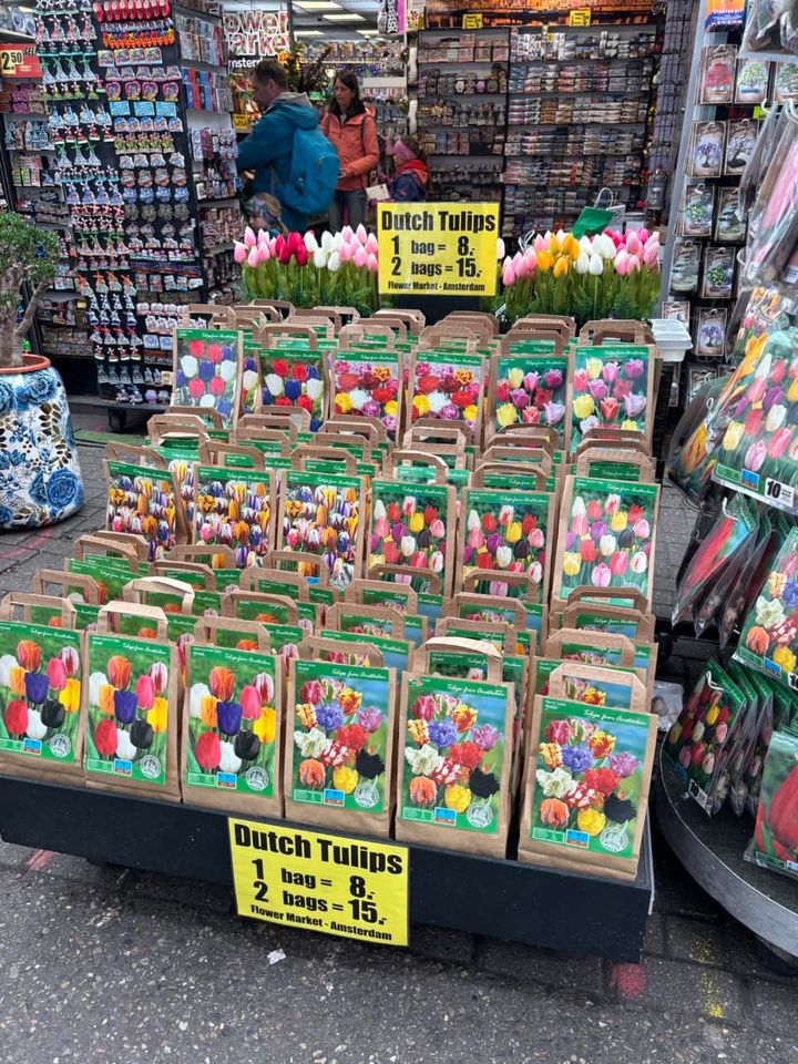 市場ではチューリップの球根が売られていました。チューリップ以外にもさまざまなお花の球根が季節に応じて販売されています。なかには野菜の種も売られていましたよ。