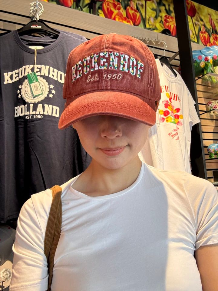 オリジナルキャップ。文字のところにチューリップの刺繍が施されています。個人的に好きなデザインでした。おみやげにも喜ばれそうですよね! 14.95ユーロ(約2,426円)