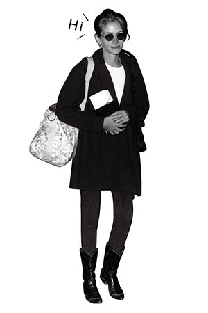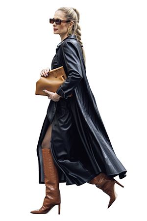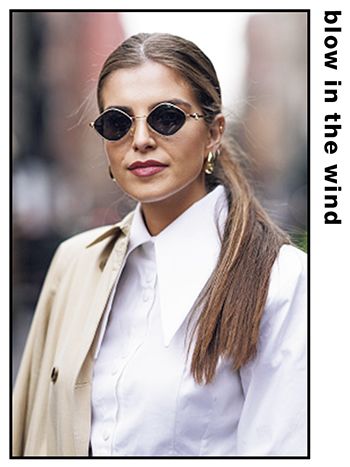 必要だけど春にはややボリューミィな生地感ゆえに、顔まわりがもたついて見えることもあるコートや羽織り。そんなときは髪をすっきりとまとめることで、重心が引き上がり、厚手の服でスタイルが膨張して見えるのを回避できる。