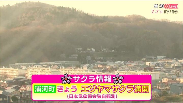 日本気象協会によると、きょう1日(木)浦河でエゾヤマザクラが満開になりました。連休後半にかけて見頃になりそうですね。