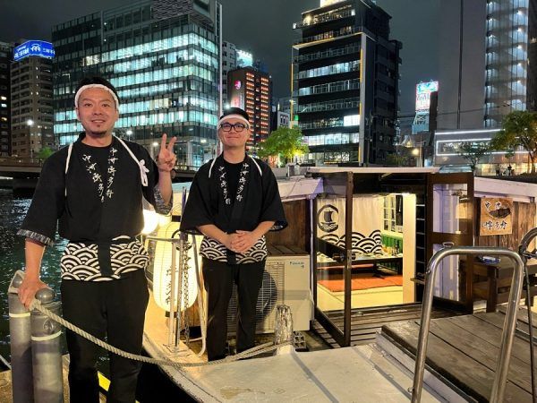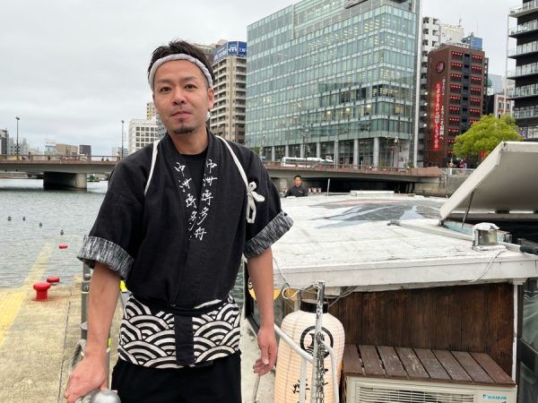 福岡市では唯一の屋形船、中洲はかた舟は今年で36年目を迎えるそうです。 わくわくドキドキ初めての乗船♪ 洋舟(写真向かって左側)と和舟(写真向かって右側)の2隻がありますが、今回は人気の和舟に乗船しました! 遊覧は中洲を流れる那珂川を通ります。