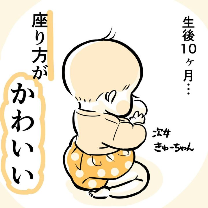 3. 悶絶級にかわいい~!生後10か月の魅力を表現した絵に3千いいね!「短い脚で正座」「うちの子もこう」