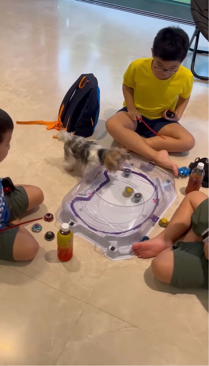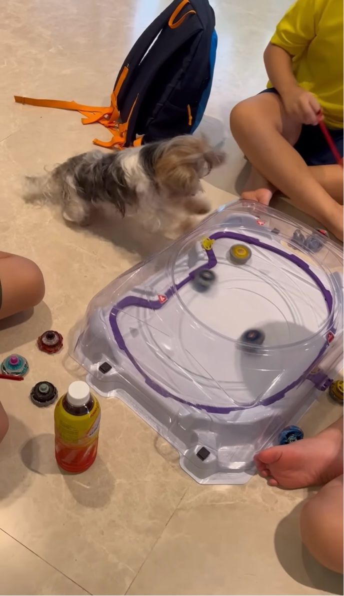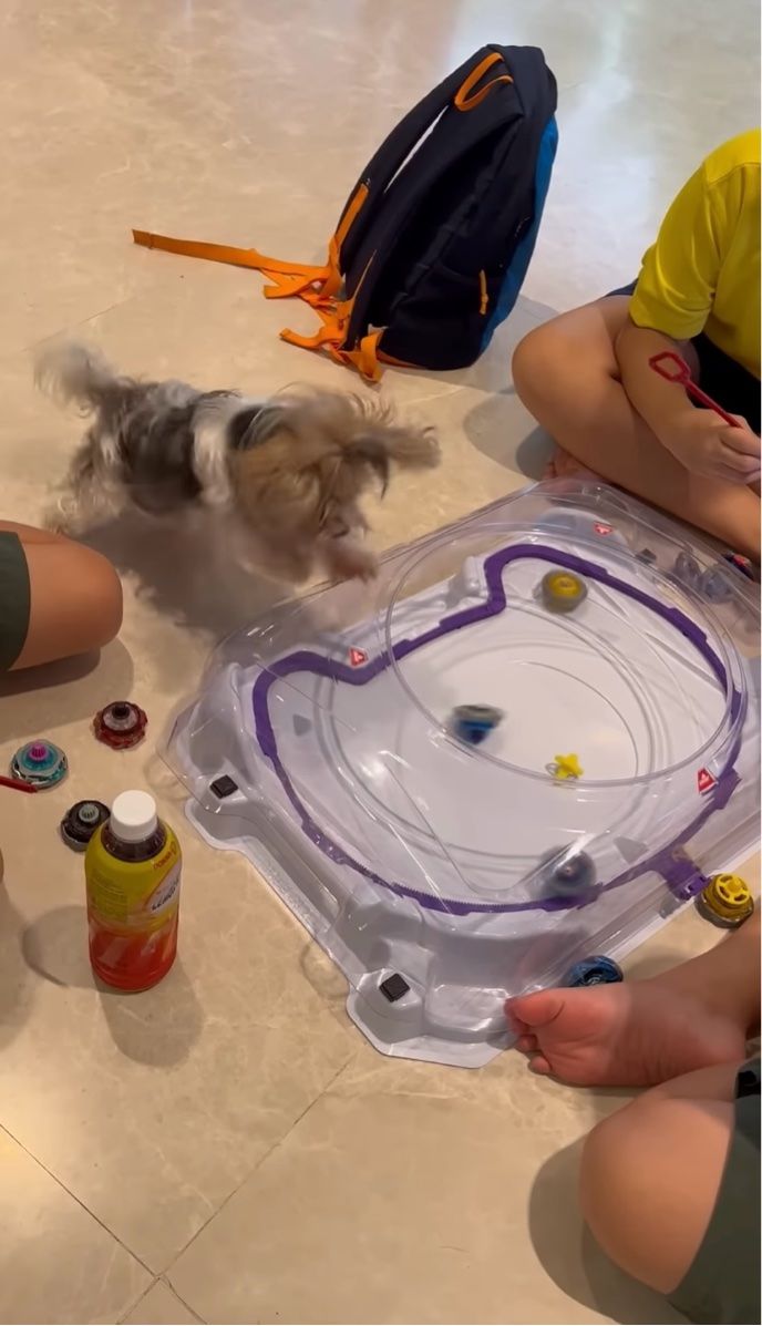 ベイブレードのバトルを観戦している子犬。 興奮しきったその姿は、こちらの動画からご覧いただけます。