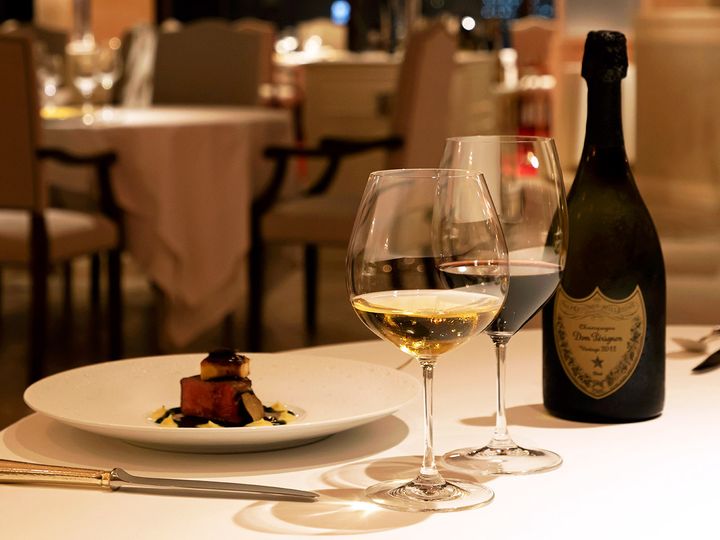いまなら5月11日まで提供する「ドン・ペリニヨン」のボトル1本と、ワイン2杯が付く「90周年記念特別プラン」の満足度がすこぶる高く、極上の時間を過ごせる。