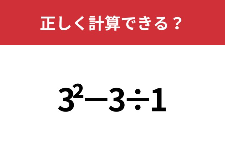 この計算ってどうやるんだっけ?「3^2−3÷1」正しく計算できる?