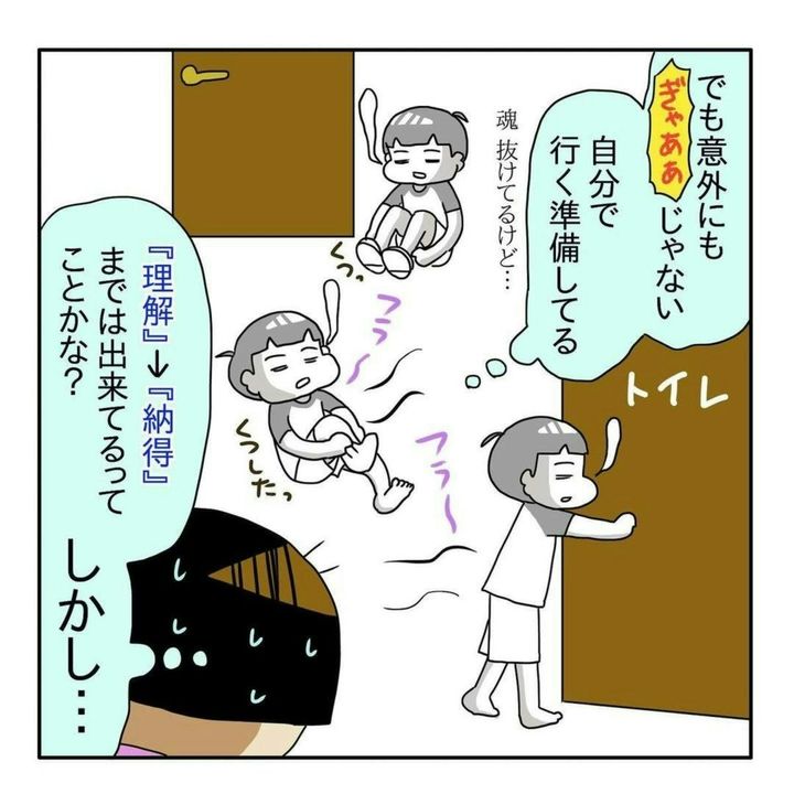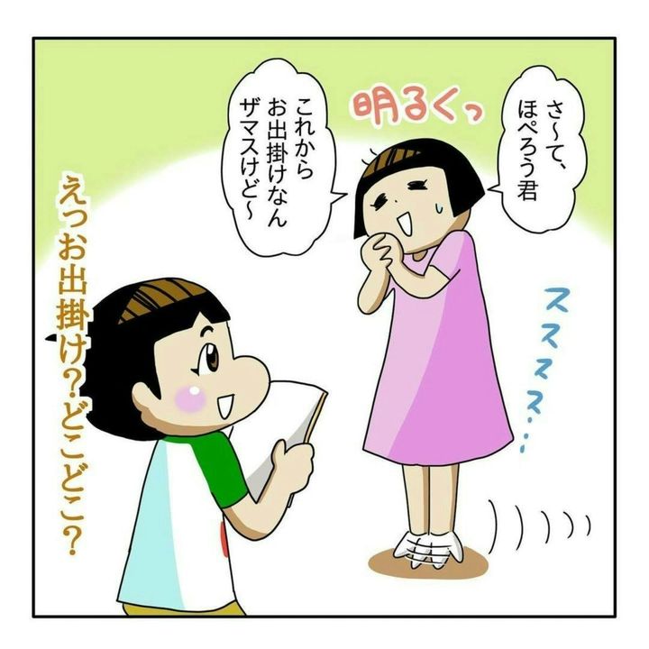 予防接種に行くことを告げた、ぼさ子さん。ほぺろうくんは固まっていましたが、泣きませんでしたね。しかも、自ら準備をしています!本当にエライですね。