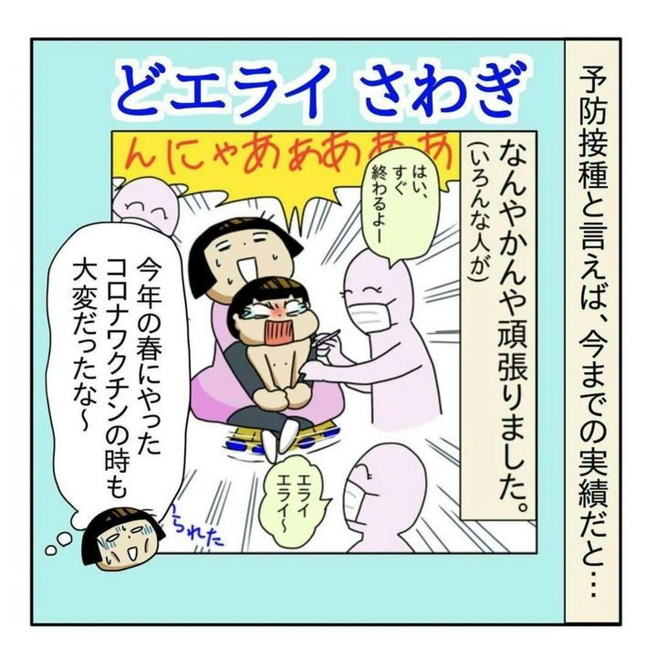 このあと、医師は電光石火のごとく注射を済ませます。終始、泣かずに注射を受けることができましたね。ですが、そのあと、ホッとしたのでしょう。診察室を出るとほぺろうくんは大号泣。母・ぼさ子さんの目にも涙が…。わが子が成長した貴重な瞬間が描かれているエピソードでした。