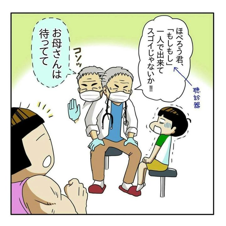病院に到着し、ほぺろうくんは放心状態のままおとなしく待合室で待機します。そしていよいよ、診察室に呼ばれました。緊張で固まってしまいますが、今回は、母・ぼさ子さんに抱っこしてもらわなくても、問診を受けることができました。すると、かかりつけの医師からある提案をされます。それは…。