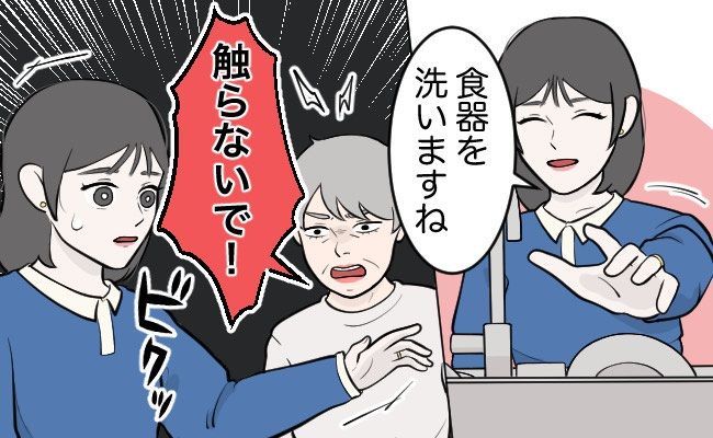 とはいえ、甘えてばかりではいけないなと思い、できる範囲で掃除や食事作り、食器洗いくらいは手伝おうと、いざ台所に立って、お皿に手を伸ばすと……。「触らないで!」と義母が大きな声でひと言。私は、何か悪いことをしてしまったのかなとびっくり。「いいからゆっくり座っていて」と言われ、おとなしく座わるしかありませんでした。