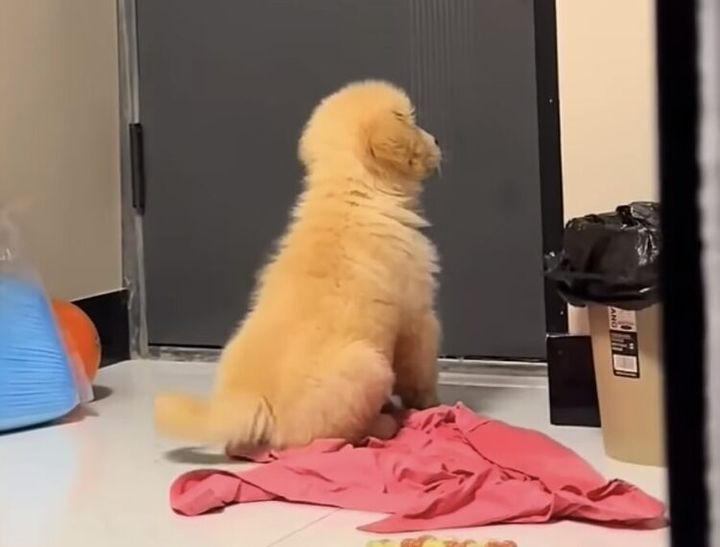 ドアの前でふりふり待機! ママの帰りを楽しみにしている子犬さん