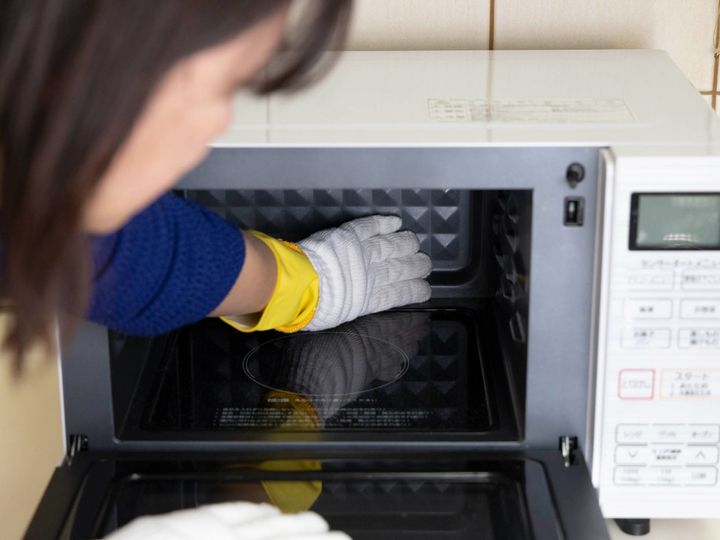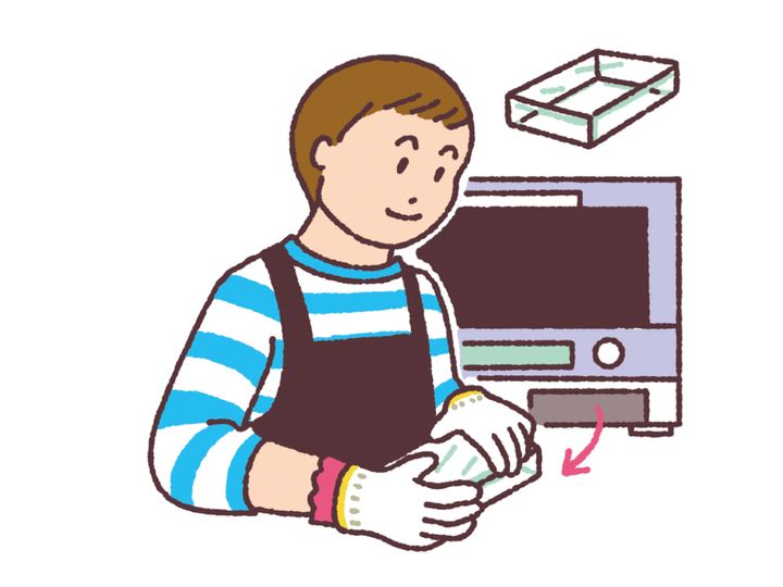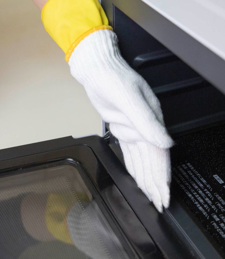 スチームタイプのオーブンレンジは、水を入れる受け皿の掃除を忘れがち。水あかやぬめり、悪臭の原因になるので、四隅までしっかり水拭きしてぬめりを取り除きましょう。