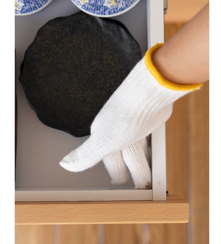 いつの間にか端っこに入り込んだ汚れやほこりも、指先で拭いて、引き上げればすっきり。食器が入った状態で拭けるのが◎。
