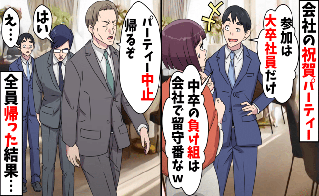 「中卒が出るとみっともない」会社の祝賀パーティーに参加NGが…学歴主義の同期の末路は