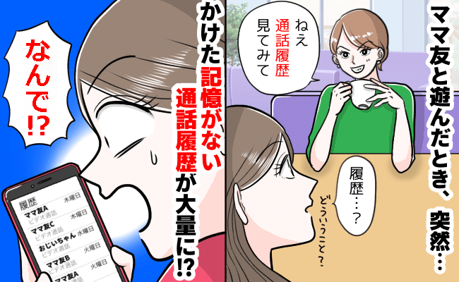 ある日ママ友と遊んだとき、スマホの通話履歴を見てみるように言われました。どういうことかわからないまま言われたとおり確認してみると、なんとかけた記憶がない履歴が大量に表示されたのです! 一体どういうこと……!?