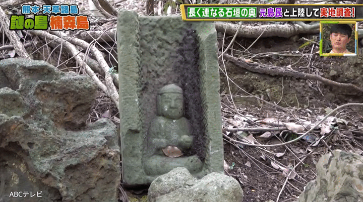 そこで調査員たちは、上空からドローンで調査を開始! すると、アオサギの大群が生息する沼のほか、地蔵や水瓶など、明らかに人が暮らしていた痕跡を発見した。