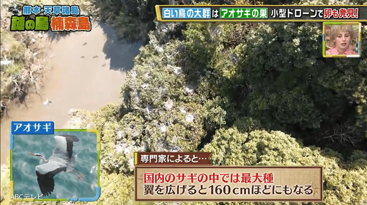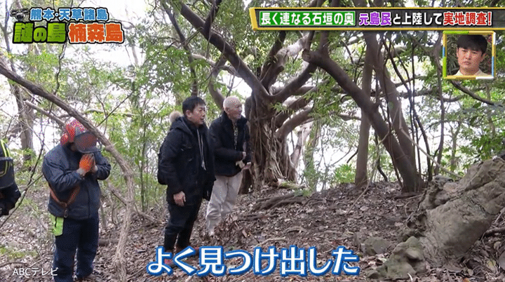 なお、調査員たちがドローンと自らの足を使って楠森島を調査した様子は、4月27日に放送されたアドベンチャーバラエティ番組『飛んで見にいく謎の島』(ABCテレビ)で紹介された。同番組は、バラエティ番組『ポツンと一軒家』と同じく、所ジョージが司会を務めた。