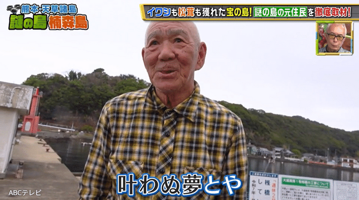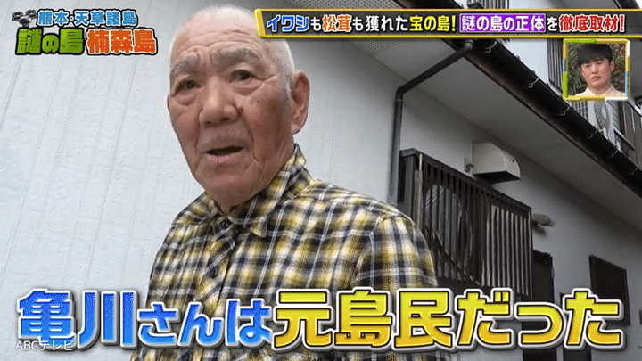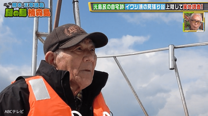 その後、粘り強く本土で調査を続けた調査員たちは、楠森島で生まれたという76歳の男性に出会った。元島民が楠森島で暮らしていたのは、今から約70年前の昭和30年頃。かつて楠森島は、イワシや松茸が獲れる宝の島だった!