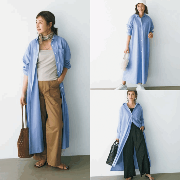 3. 【60ファッション】シャツワンピース着まわし3パターンをご紹介!旅服にも丁度いい!着まわし力抜群のシャツ4選