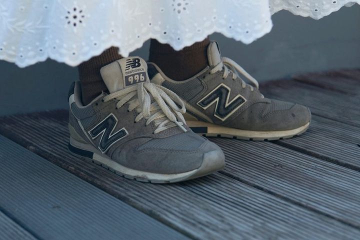 甘めのスカートと合わせてもカジュアルに寄りすぎず、バランスよく着地させてくれる名品、ニューバランスの「996」モデル。