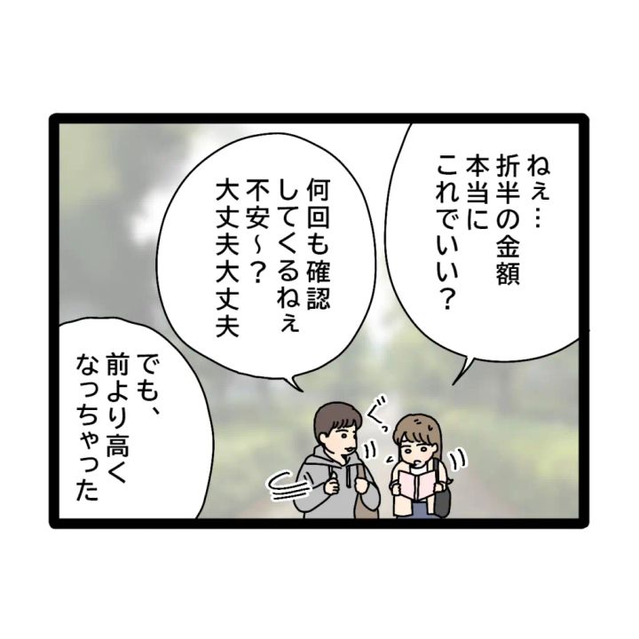 お金の管理のことで話をすると義母に呼ばれたアヤカさんは、何を言われるのかと心配でなりません。何度も準備した明細ノートを見直し「ねぇ、折半の金額本当にこれでいい?」とコウタさんに聞きました。「何回も確認してくるねぇ。不安?大丈夫大丈夫」と相変わらずのん気なコウタさん。アヤカさんは、前回「高すぎる」と義母に文句を言われた旅行代金よりも高くなってしまっていることが不安でした。