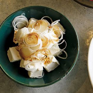 2 器にクリームチーズを盛り、長ねぎをのせてしょうゆをかける。