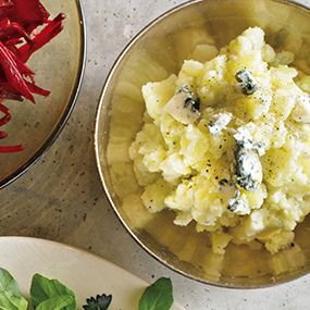 2 ボウルに1を入れて潰し、塩をふる。熱いうちにAを加えてよく混ぜ、器に盛る。好みでオリーブ油少々(分量外)をかけ、黒こしょうをふる。