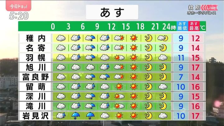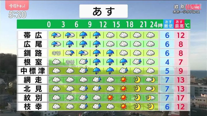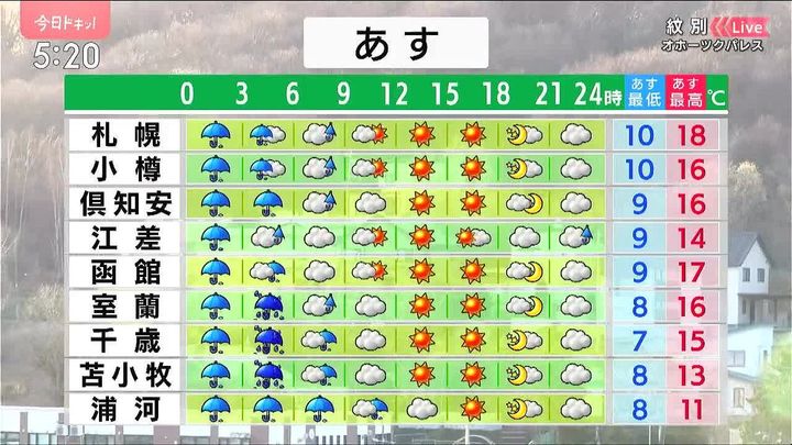 ・あすの北海道の天気と気温