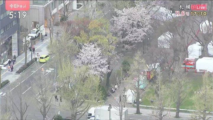 札幌の大通公園のサクラは風に耐えて咲いていますね。