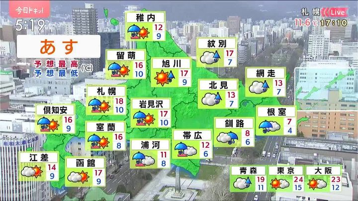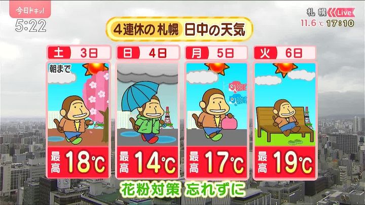 では、きょうは4連休の札幌の天気をもんすけでお伝えします!