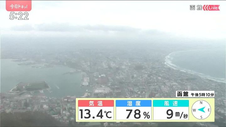 背景は2日午後5時ごろの函館情報カメラ