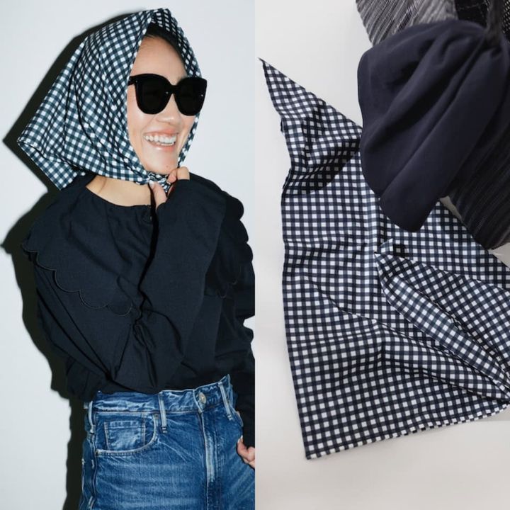 さらに、今回は嬉しいノベルティを配布中♡ オッシュマンズの40周年を記念して、SCALLOP COLLAR RASH GUARDを購入すると黒バンダナ、RASH LEGGINGSを購入するとギンガムバンダナが付いてきます。60cm正方形の大判サイズ&UVカット素材を使用しているので、頭や首に巻けば紫外線からもしっかりガード。かさ張らず、持ち運ぶのにも便利です。