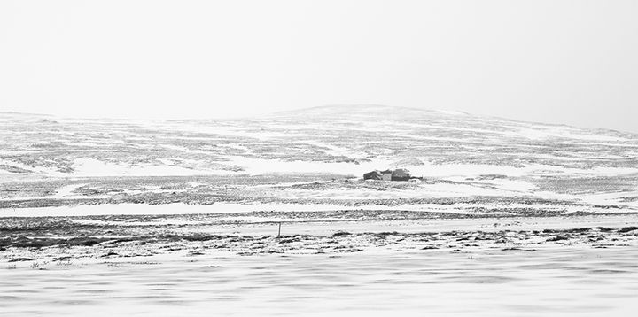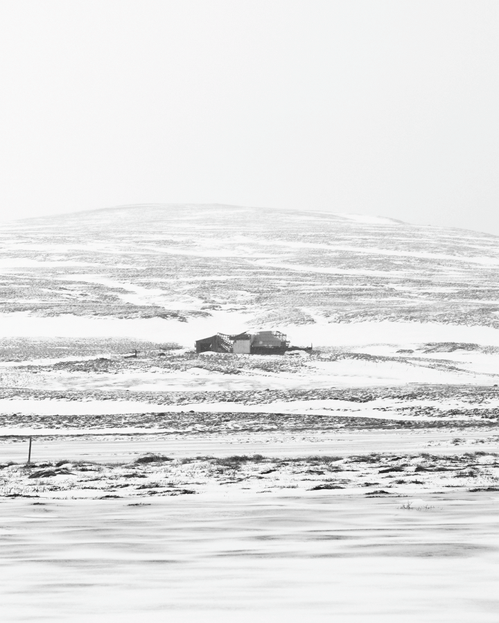 雪の重みで崩れた木造建築、意味を失った看板、車窓から流れゆく景色、自然が生み出す抽象的な模様など、人工と自然のあわいに浮かぶ被写体たちが、空白、静寂、記憶について静かに語りかける。