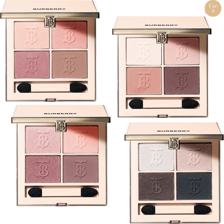 肌なじみのいいヌード系から温かみのあるピンクトーン、モードなスモーキーカラーまで使いやすい配色がそろう。バーバリー アイ クアッド 01(左上)、02(右上)、03(左下)、04(右下)各 ¥8,360(バーバリー ビューティ)