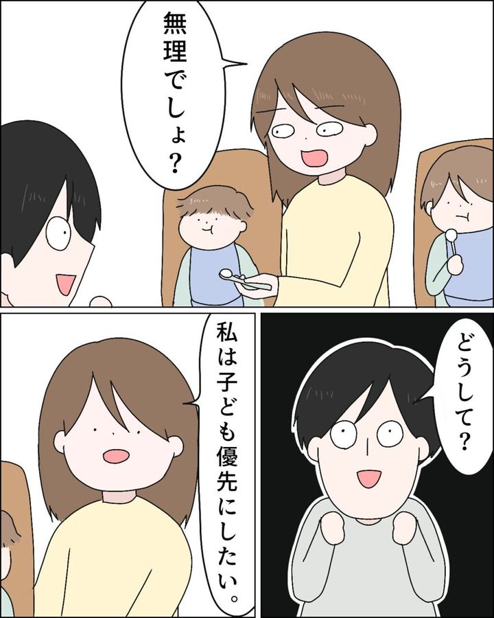 「無理でしょ?」と、私は顔色一つ変えず即答しました。「私は子ども優先にしたい。」