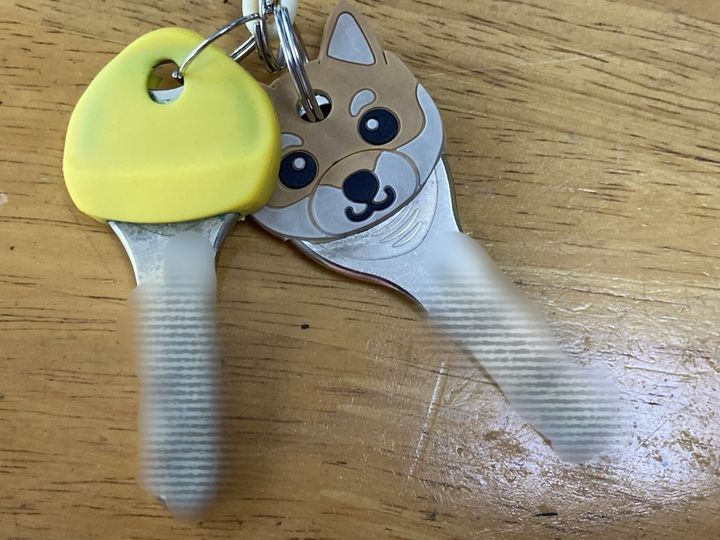 鍵には、写真のようにキーカバーをつけるのを強く推奨します。鍵に書かれている鍵番号で、合鍵がカンタンに作れてしまうからです。